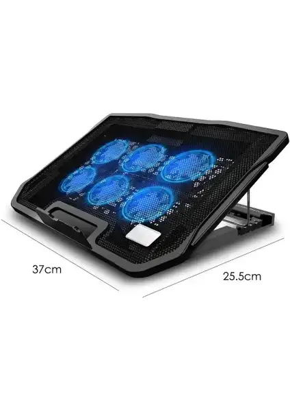 15.6 inç uyumlu bu 6 fanlı laptop soğutucu stand, dizüstü bilgisayarınızın altındaki hava akışını artırarak ısınmayı azaltmaya yardımcı olur. Alüminyum gövde ve sessiz çalışan fan yapısı ile uzun süreli kullanımda performans stabilitesi sağlar. USB ile çalışan, hafif ve taşınabilir tasarımı sayesinde ofis, ev veya seyahatlerde kullanım için uygundur.