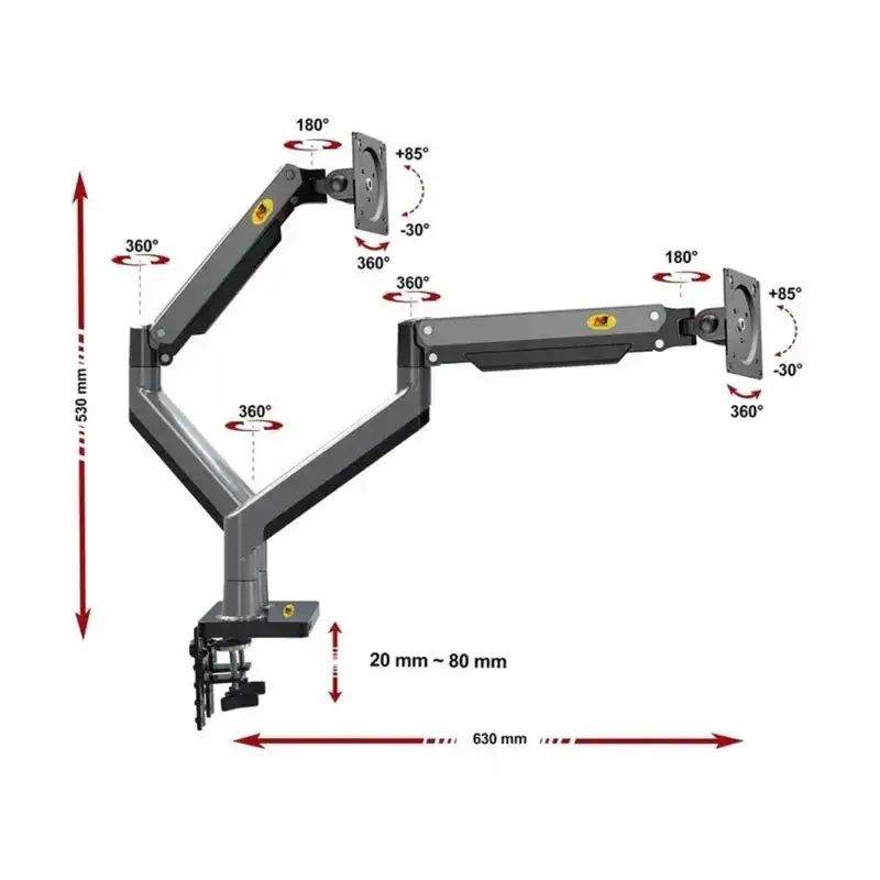 North Bayou G35, çift kollu tasarımı sayesinde monitörünü istediğin gibi konumlandırmana olanak tanır. Daha geniş hareket kabiliyeti ile hem iş hem gaming kullanımında maksimum konfor sağlar.