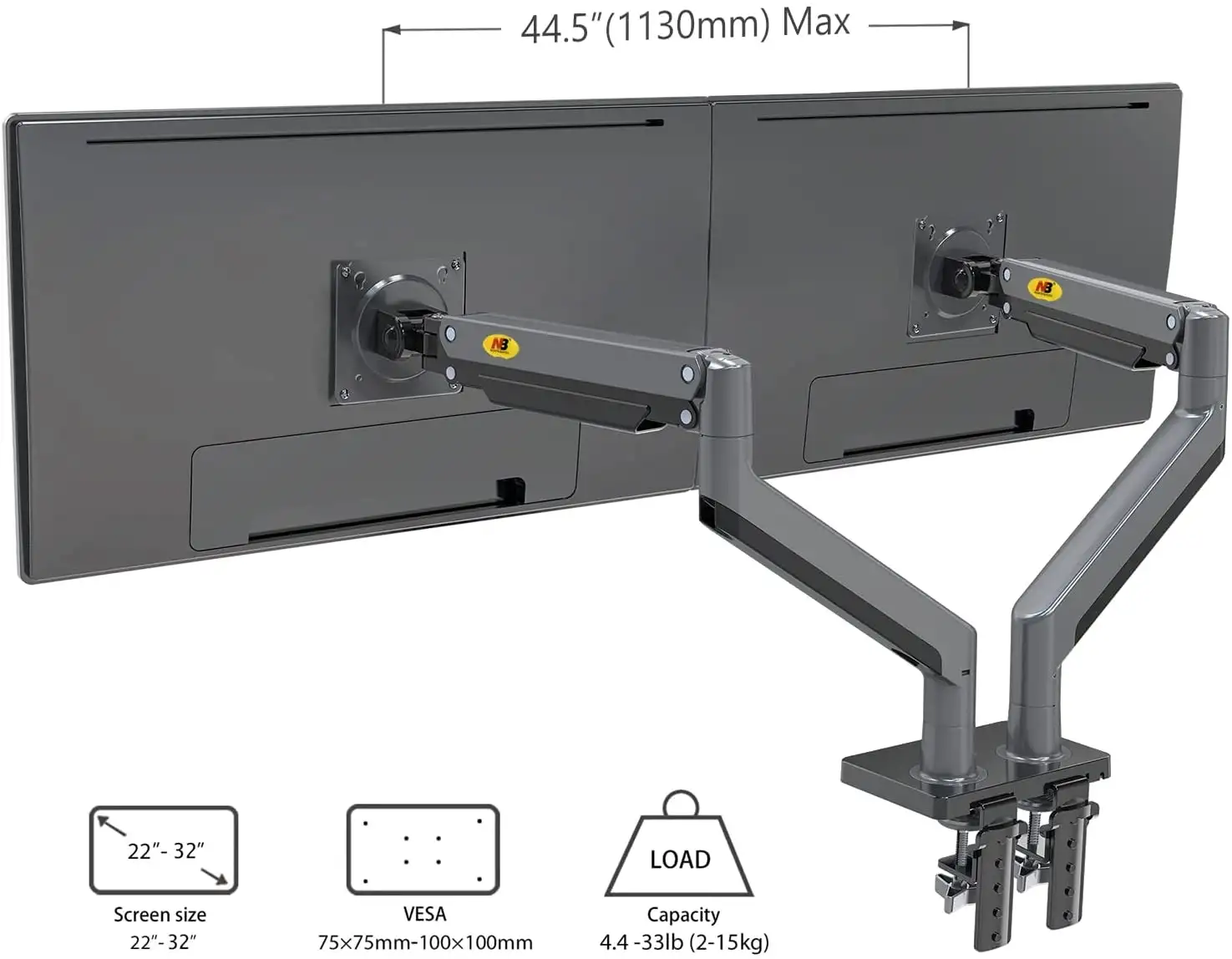 HPY Pazar North Bayou G35 22–32" 2–12 kg Ekranlar İçin Masaüstü Çift Kollu Amörtisörlü Monitör Tutucu
