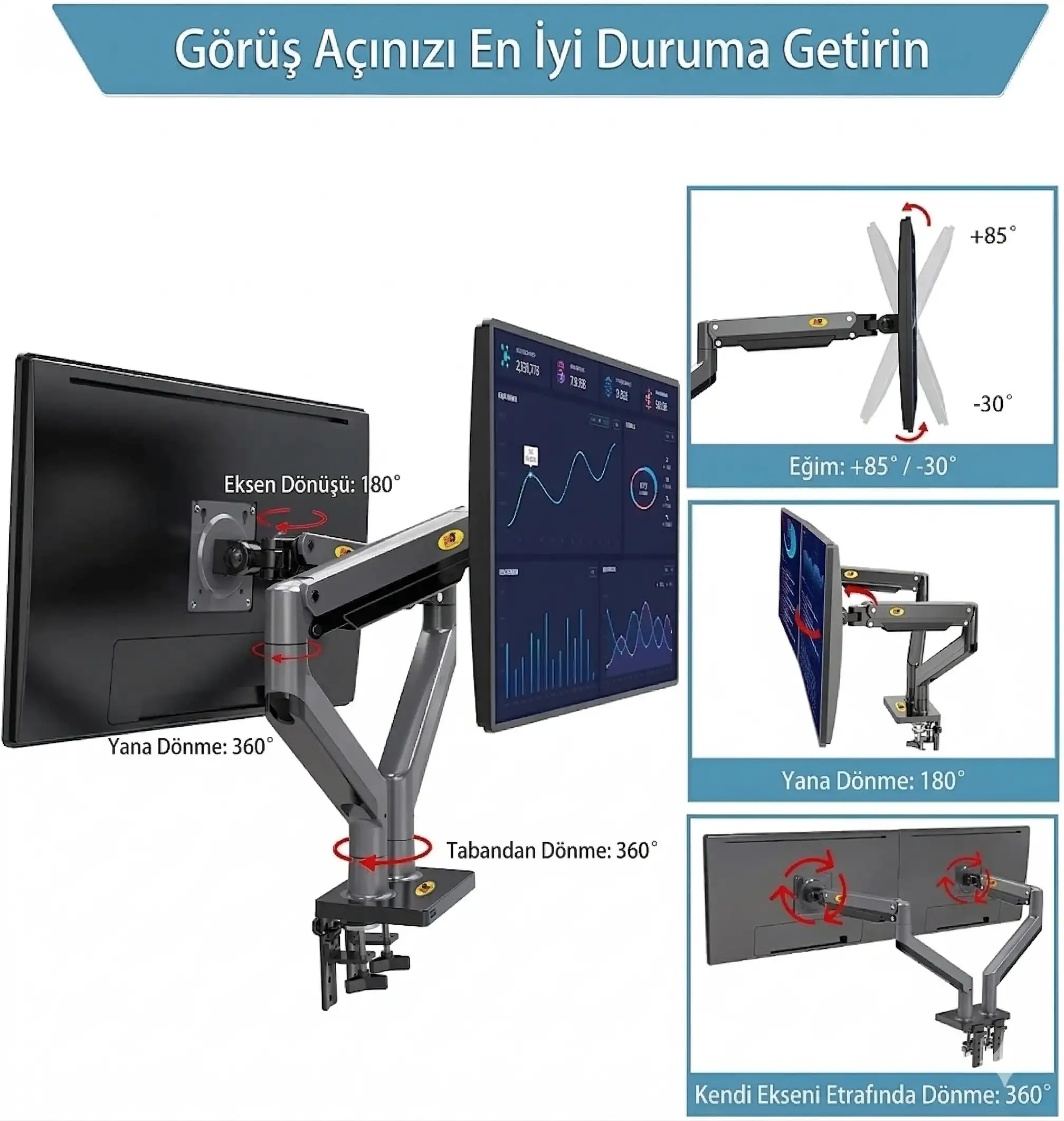 Çift Kollu Güçlü Yapı ile Masanda Maksimum Alan Aç!