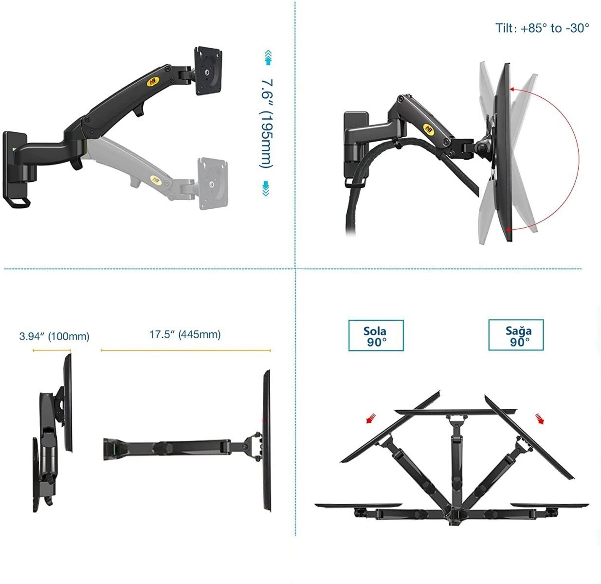 NB-F150 17–35″ duvar/monitör tutucu braketi, LED/LCD monitör ve televizyonlar için tam hareketli, amortisörlü ve ergonomik bir montaj çözümüdür. Duvara monte edilerek masa veya zemin alanı kazandırır; ekranın yüksekliğini, açısını ve yönünü rahatça ayarlayarak ideal izleme ve çalışma konumu sağlar.