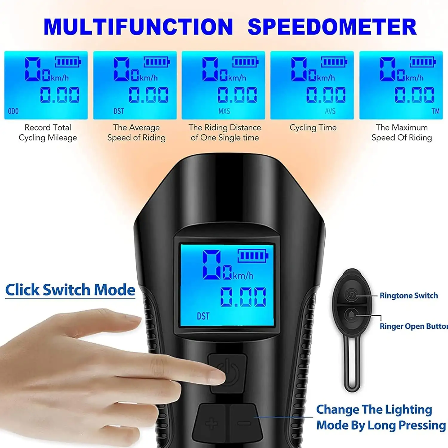 DailyTech bisiklet ışık ve korna seti, şehir içi veya parkur sürüşleri için güvenlik ve konfor sağlar. USB şarjlı yapısı sayesinde pil/şarj değişimi zahmetini ortadan kaldırır; aynı zamanda suya dayanıklı tasarımı ile yağmurlu havalarda da kullanılabilir. LCD ekranlı hız ölçer, sürüş verilerinizi takip etmenize yardımcı olur.