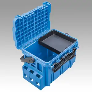 Malzeme: Darbe dayanımlı polipropilen Boyutlar: 540 × 340 × 350 mm Ağırlık: 3,600 g Uyumlu Parçalar: Multi-Holder, Meiho opsiyonel ürünler