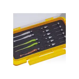 MEIHO RunGun 1010W-2, balıkçılıkta pratikliği ön planda tutan avcılar için özel olarak tasarlanmış çift taraflı slit form kutudur. Her iki yüzeyde yer alan slit sünger, jighead ve iğnelerin düzenli, güvenli ve hızlı erişilebilir şekilde saklanmasını sağlar.