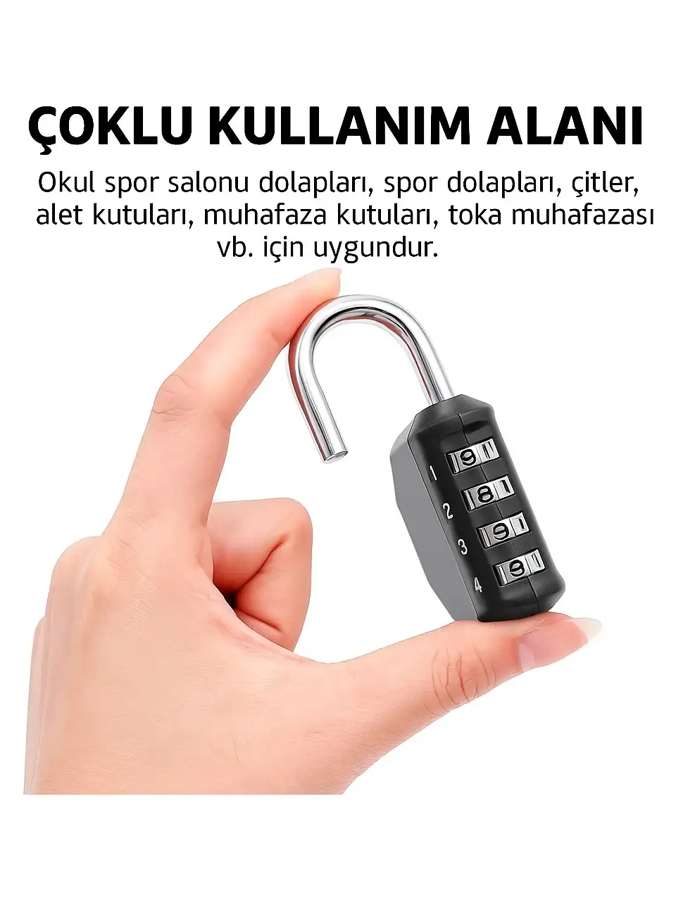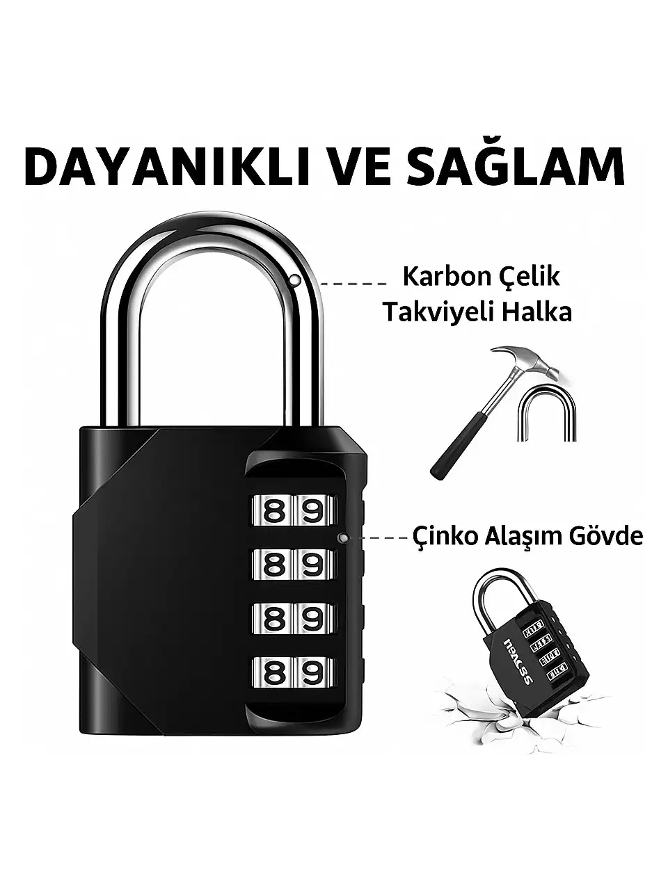 Eşyalarınızı anahtar derdi olmadan güvenle korumak artık çok daha kolay! 4 Haneli Şifreli Asma Kilit, anahtar taşıma stresini ortadan kaldıran pratik şifreli güvenlik çözümüdür. Yüksek kaliteli malzemesi ve kompakt tasarımıyla günlük kullanıma ve seyahatlere uygundur.