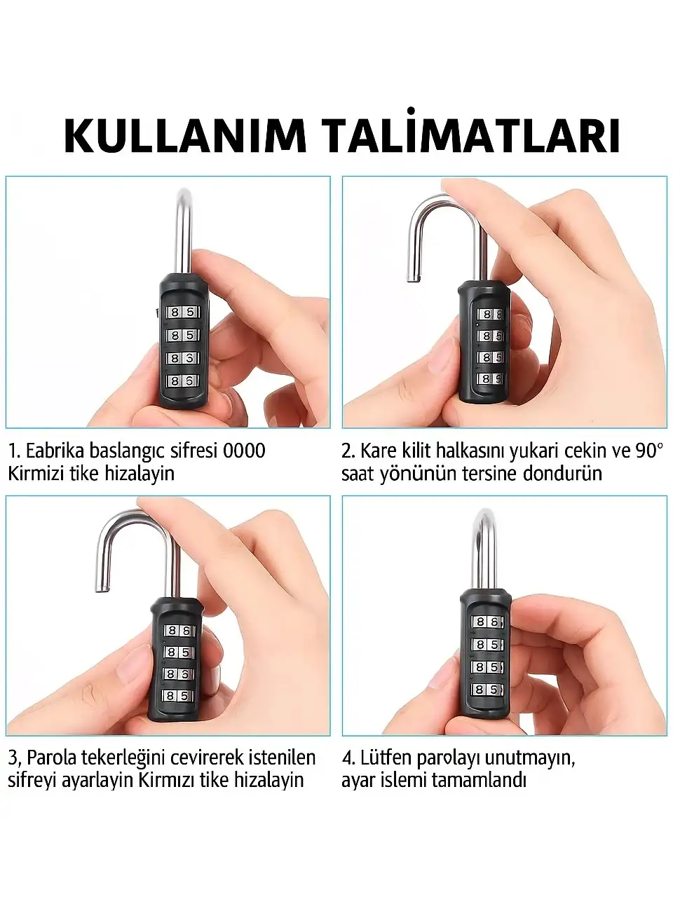- ➡️ Not: Şifrenizi mutlaka not alınız; unutulursa kilit açılamaz.