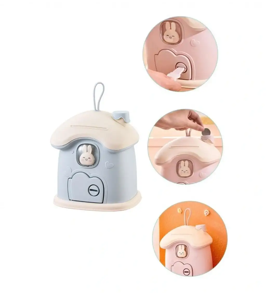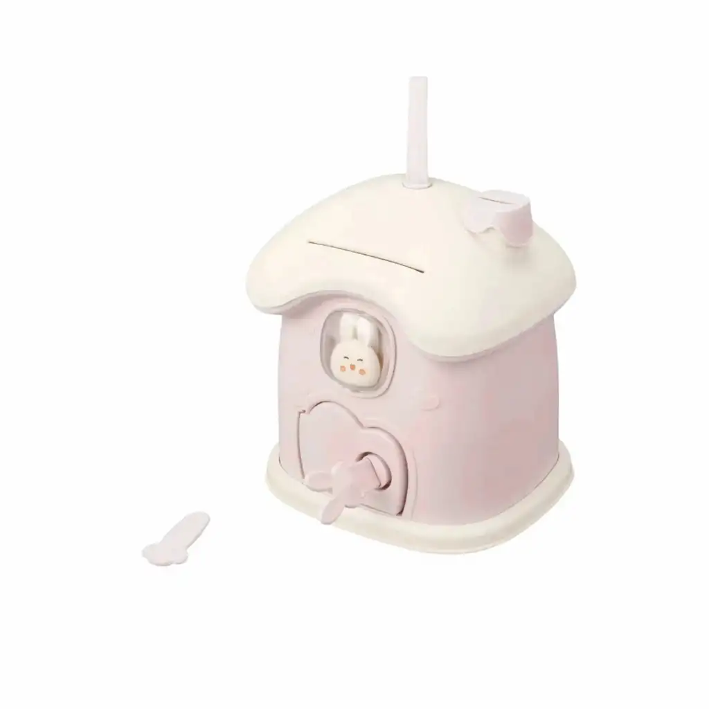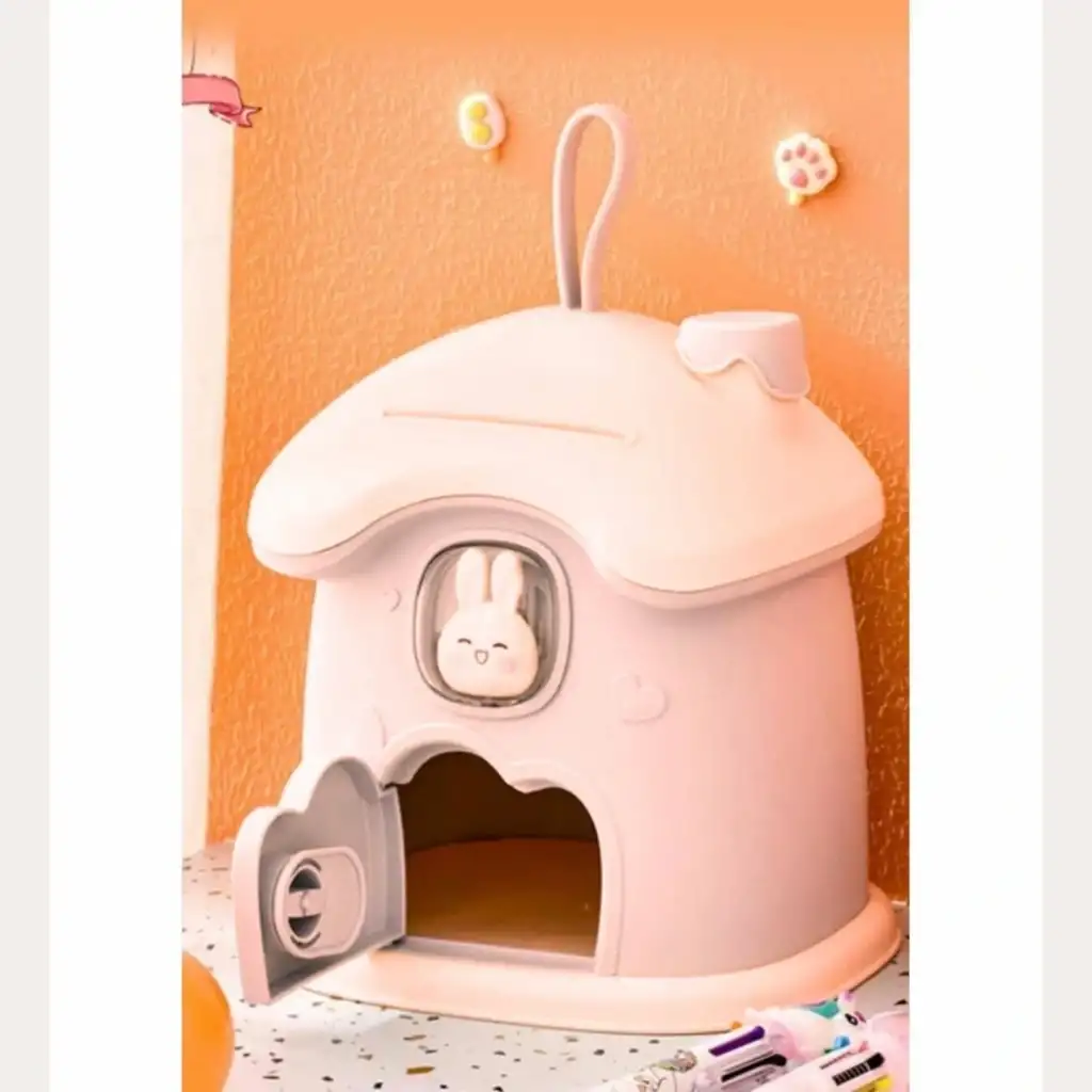 Sevimli tavşan figürü sayesinde çocukların ilgisini çeker, para biriktirmeyi keyifli bir oyuna dönüştürür. Anahtarlı kilit sistemi ile biriken paralar güvenle saklanır ve çocuklara sorumluluk bilinci kazandırır.